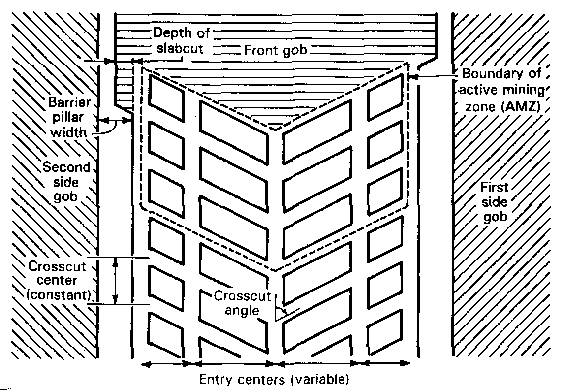 Figure D1 - Features of retreat mining layouts considered in the ARMPS program.