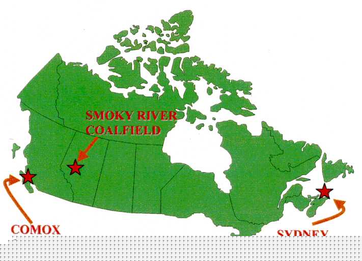 Figure 1: Location of the Sydney, Comox and Smoky River Coalfields